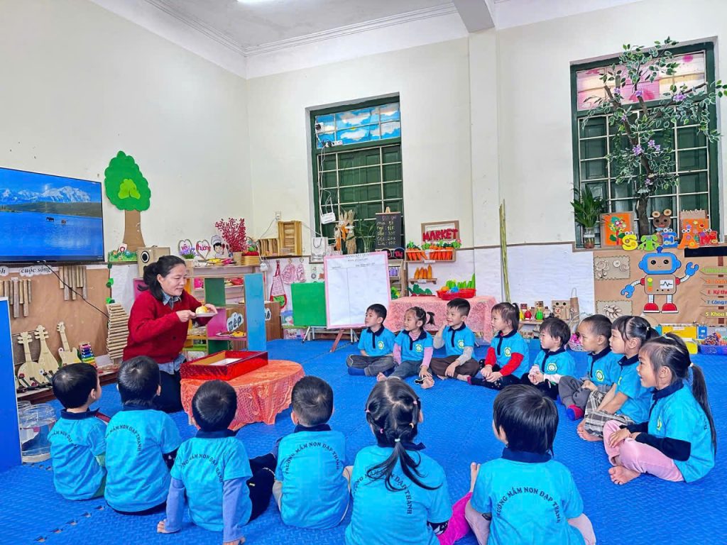 Các bé được khám phá quả cam qua giờ dạy của cô Đặng Thị Vân – giáo viên cơ sở Bắc Cáp, Phân hiệu 1. Tiết dạy mang đến cho trẻ nhiều tri thức mới mẻ, khơi gợi sự tò mò và hứng thú khám phá.