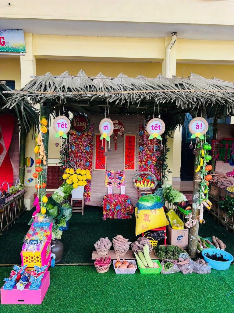 Thông qua các hoạt động, các bé được vui chơi, giao lưu, trải nghiệm nét đẹp Tết cổ truyền trong không khí rộn ràng, an toàn và đầy yêu thương.