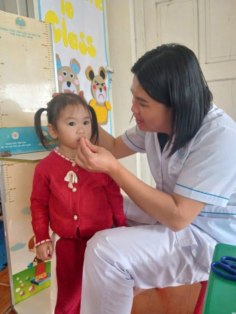 Trẻ 6–36 tháng tuổi: Uống bổ sung Vitamin A theo đúng quy định. Nhà trường phối hợp với trạm y tế xã và các bậc phụ huynh đảm bảo 100% trẻ trong độ tuổi được tham gia đầy đủ, đúng thời gian, góp phần nâng cao sức khỏe và phòng chống suy dinh dưỡng cho trẻ.