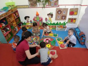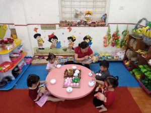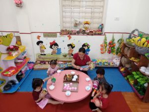 👶 Góc thao tác vai: Trẻ tập làm “người lớn nhỏ” khi biết bế em, cho em ăn, ru em ngủ – từ đó hình thành tình cảm yêu thương và kỹ năng chăm sóc.