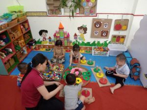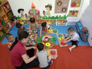 🧩 Góc hoạt động với đồ vật: Các bé say mê xếp vòng, xâu vòng, rèn luyện sự khéo léo của đôi tay và phát triển tư duy.