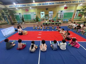 Những sợi dây không chỉ là đồ dùng mà còn trở thành “cầu nối” giúp trẻ vận động linh hoạt theo nhạc, rèn phản xạ nhanh và tăng khả năng phối hợp. Tiếng cười, sự hào hứng lan tỏa khắp lớp học, tạo nên một giờ học thật sinh động và cuốn hút