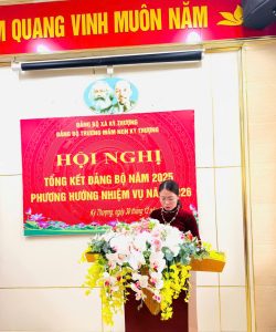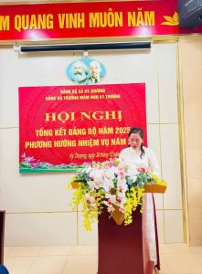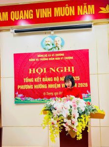 Đ/c: Nguyễn Thị Huệ- UV Ban chấp hành – Phó bí thư đảng báo cáo tổng kết Đảng bộ năm 2025 và phương hướng nhiệm vụ năm 2026.