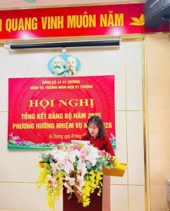 Đ/c: Nguyễn Thị Hoàn UV Ban chấp hành- Bí thư Đảng Bộ trường Mầm non kỳ thượng Báo cáo kiểm điểm tập thể Ban Chấp hành Đảng bộ năm 2025.