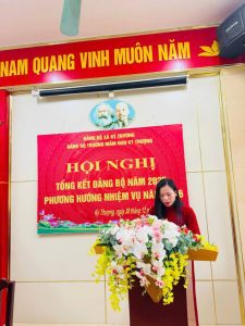 Đ/c Nông Thúy Hà – UV Ban chấp hành Đảng bộ- Phó Hiệu Trưởng nhà trường- Phó chủ nhiệm ủy ban kiểm tra trình bày giải pháp nâng cao chất lượng kiểm tra giám sát trong tổ chức Đảng.