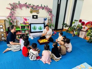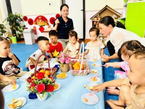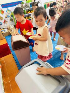 Bên cạnh đó, các bé còn được giáo dục thói quen ăn uống lành mạnh, biết bỏ vỏ và hạt đúng nơi quy định 🧺