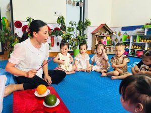 🍊 Giờ học nhận biết quả cam tại lớp nhà trẻ 18–24 tháng – Phân hiệu 1